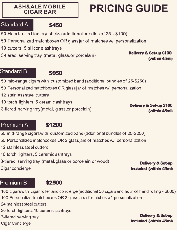 MOBILE CIGAR BAR AND PRIVATE PARTIES - ASH AND ALE LOUNGE